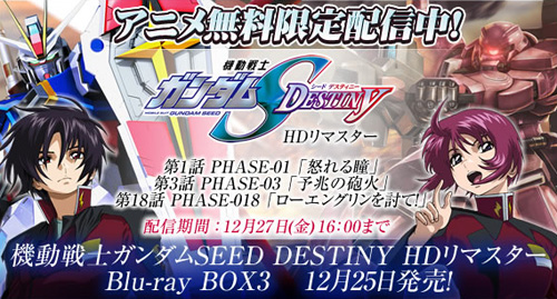 また、「機動戦士ガンダムSEED DESTINY HDリマスター」最新のBlu-ray BOX3は、バンダイビジュアルからいよいよ12月25日(水)に発売される。こちらもお見逃しなく。