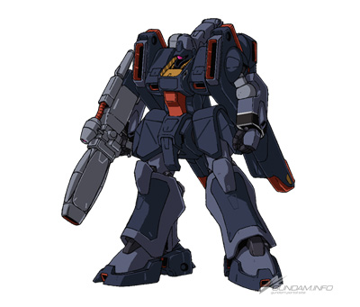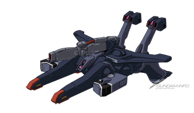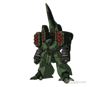 A support mobile suit developed during the First Neo Zeon War. Its small frame is loaded with missiles, and a large transforming booster pod for space combat allowing it to perform suicide attacks on enemy ships adds to its already-formidable firepower.