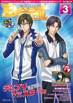 BEAT Magazine brings you the latest info on Bandai Visual's latest titles, available free at video stores available nationwide once a month! The March issue, due out February 10th, covers the Prince of Tennis Festival 2013 and more.
