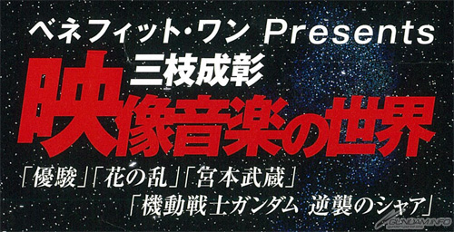 ベネフィット・ワン Presents 三枝成彰 映像音楽の世界 ~「優駿」「花の乱」「宮本武蔵」「機動戦士ガンダム 逆襲のシャア」~ |