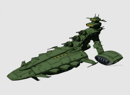 ルウム戦役に投入された、地球連邦軍宇宙艦隊が誇る高火力を持つ主力宇宙戦艦。主砲である大型2連装メガ粒子砲2基をはじめ、副砲の2連装メガ粒子砲6基、防宙能力を発揮する多数の対空銃座を配置。ジオン公国軍の艦船と比較すると圧倒的な打撃力と防御力を有している。しかし、ミノフスキー粒子散布下においては、電子制御による防御機能を封じられ、ジオン公国軍のモビルスーツを用いた戦法に大敗を喫してしまう。
