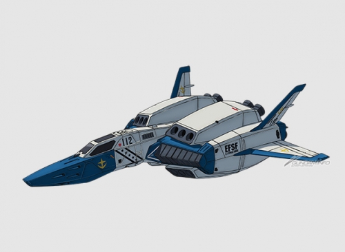 地球連邦宇宙軍が宇宙空間での戦闘を想定して配備していた宇宙戦闘機。装備の変更により、大気圏高高度の飛行も可能で宇宙用ではロケットブースターを使用した軽快な機動性を活かして、宇宙用艦船の対空防護や対空戦闘で活躍した。主武装は機首の機関砲に加え、分離可能なコンテナ型のミサイルランチャーを機体の上下4箇所に装備しており、多数のミサイルを発射する攻撃を得意としていた。