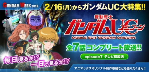 アニマックス「ガンダムウィーク2015」2月16日より「ガンダムUC」全7話&ライブイベント放送!