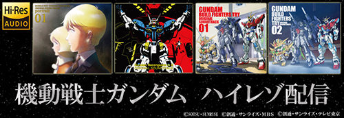 今回ハイレゾ配信がスタートしたのは、『機動戦士ガンダム THE ORIGIN』オリジナルサウンドトラック「portrait 01」、『ガンダム Gのレコンギスタ』オリジナルサウンドトラック、『ガンダムビルドファイターズトライ』 オリジナルサウンドトラック01と02の計4作。