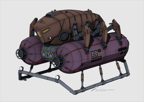 ジオン公国軍が展開した独立戦争における最初の大規模作戦は、地球連邦軍総司令部の所在するジャブローに向けてスペースコロニーを落着させる「ブリティッシュ作戦」であった。この作戦を遂行させるためには、スペースコロニー1基をほぼ無傷で手に入れる必要があった。ジオン公国軍は親地球連邦派のサイド2、ハッテの首都バンチ、アイランド・イフィッシュに狙いを定め、致死性の化学兵器「GGガス」を用いて全住民を死に至らしめるべく行動する。その際に使用されたのが、GGガスの運搬と注入を行うことができる特殊宇宙艇である。この宇宙艇は操縦やガス注入作業のコントロールを行う上部のユニットと、下部のタンクユニットで構成されている。上部ユニット部分は虫を思わせる特殊な形状をしており、タンク部と分離しての移動が可能となっている。そもそもこの宇宙艇はGGガス注入専用に開発されたものではなく、酸素をはじめとした、コロニー建設時などに使用する気体や液体の運搬、および現地での注入を目的としたものであり、それを軍用に転用したもの。そのため、乗員も想定外のGGガス漏洩でも被災しないよう特殊なノーマルスーツを着用していた。