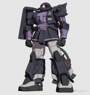 ジオン公国軍の主力として活躍することになるMS-06 ザクIIは、初期生産型となるC型、その後に登場するF型をはじめ、さまざまな戦況に合わせて運用可能な「汎用性」を求める形で開発が行われた。独立戦争開戦に向けて、汎用性の高いC型の量産体制が整いはじめると、ジオン公国軍は特定の戦闘状況に特化した、局地戦対応のMS-06 ザクIIの開発を始める。その中で最も早い時期に完成したのが、MS-06R-1A 高機動型ザクIIである。この機体は、汎用性を排除し、宇宙空間での戦闘に特化すべく、より高い機動性を求めて改良が施されている。背部の大型化したランドセル(バックパック)に大量に消費する推進剤をより多く積み込むことができるプロペラントタンクを増設。脚部には増速用の大型スラスターを3基ずつ計6基設置し、機動力の増強を図っている。この機体は、独立戦争初期の大規模艦隊戦となったルウム会戦において、かつてモビルスーツ開発にテストパイロットとして関わっていたガイア、オルテガ、マッシュら黒い三連星によって運用された。彼らは対艦戦闘用のフォーメーションを組んだ三位一体の攻撃を得意としており、役割に応じて異なる兵装も特徴となっている。チームを率いるガイア機は両肩にシールドを装備することで、バズーカの携行弾数が向上。射撃能力に優れるマッシュの機体は中・長距離射撃が可能なMS用対艦ライフル ASR-78を装備。そして、近接での格闘戦を得意とするオルテガの機体は、ガイア機とマッシュ機の攻撃の仕上げとして、ジャイアント・ヒート・ホークの直接攻撃でとどめを刺すという連携を行い、ルウム会戦において高い戦果を挙げることになる。